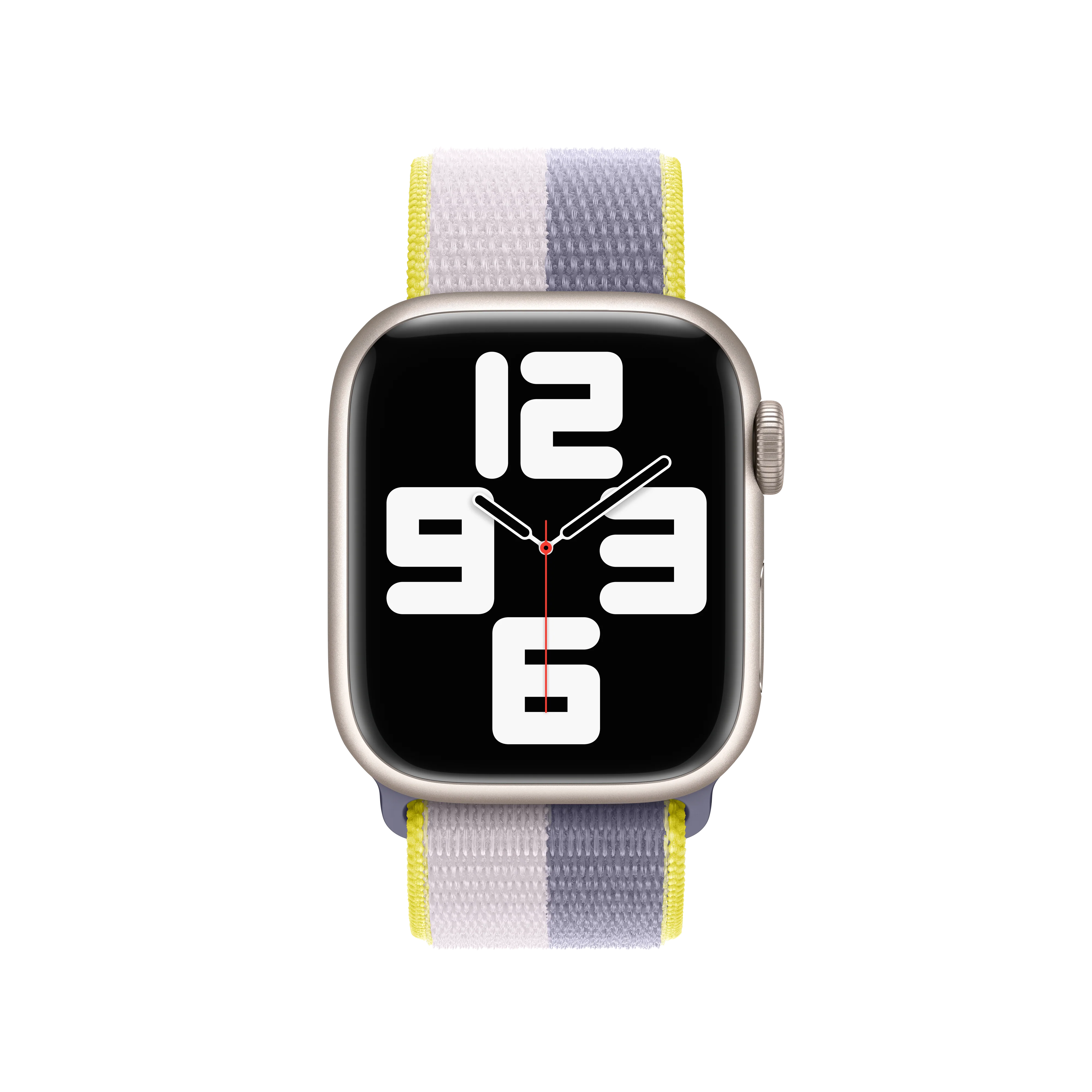 Soft, breathable and lightweight, the Sport Loop features a hook-and-loop fastener for quick and easy adjustment. The double-layer nylon weave has dense loops on the skin side that provide soft cushioning while allowing moisture to escape. This weave is made with 82% recycled yarn, some of which contains material from discarded fishing nets. This strap is carbon neutral. The Sport Loop contains 45% recycled content by weight, 100% of manufacturing electricity is covered by clean energy, and 50% or more of all carbon-neutral Apple Watch products are shipped without aeroplanes.